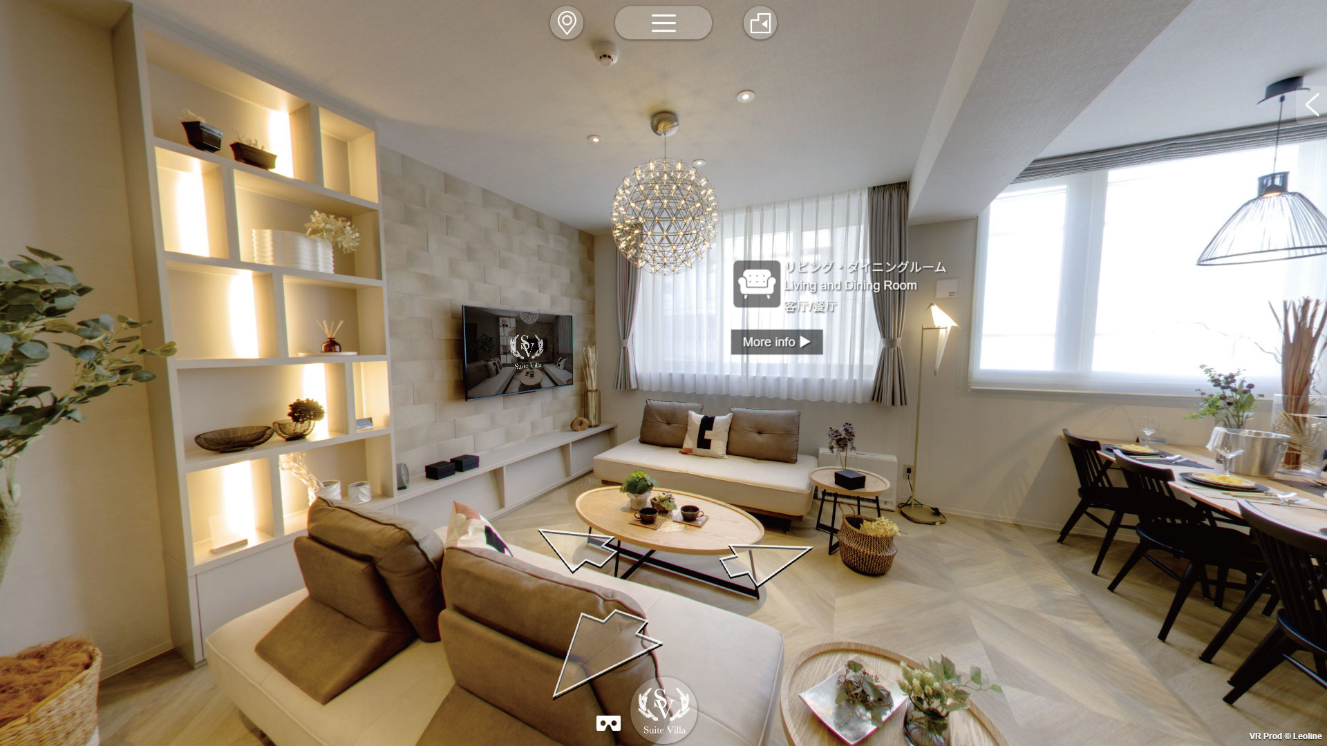 札幌中心部にある5階建てのハウスホテル。3ベットルーム3バスルームの1フロアを貸し切って宿泊できる贅沢空間「Suite Villa SOUTH4」を閲覧できるVRを導入していただきました。